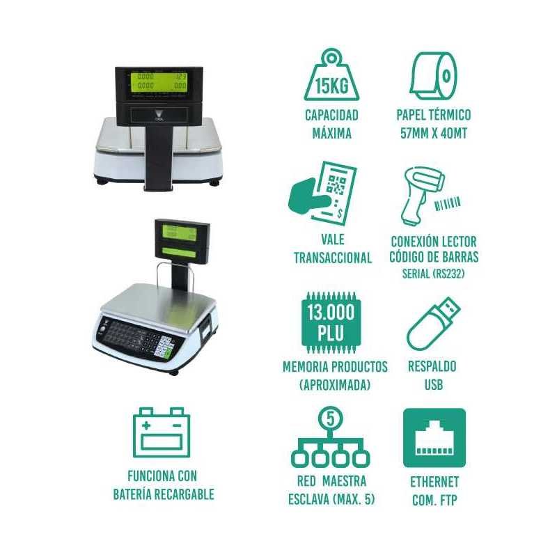 Capacidad de 15Kg, división 2 grs