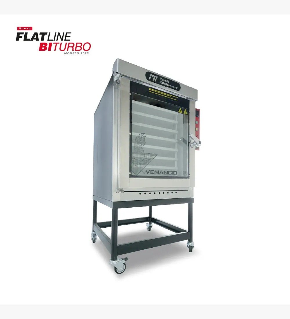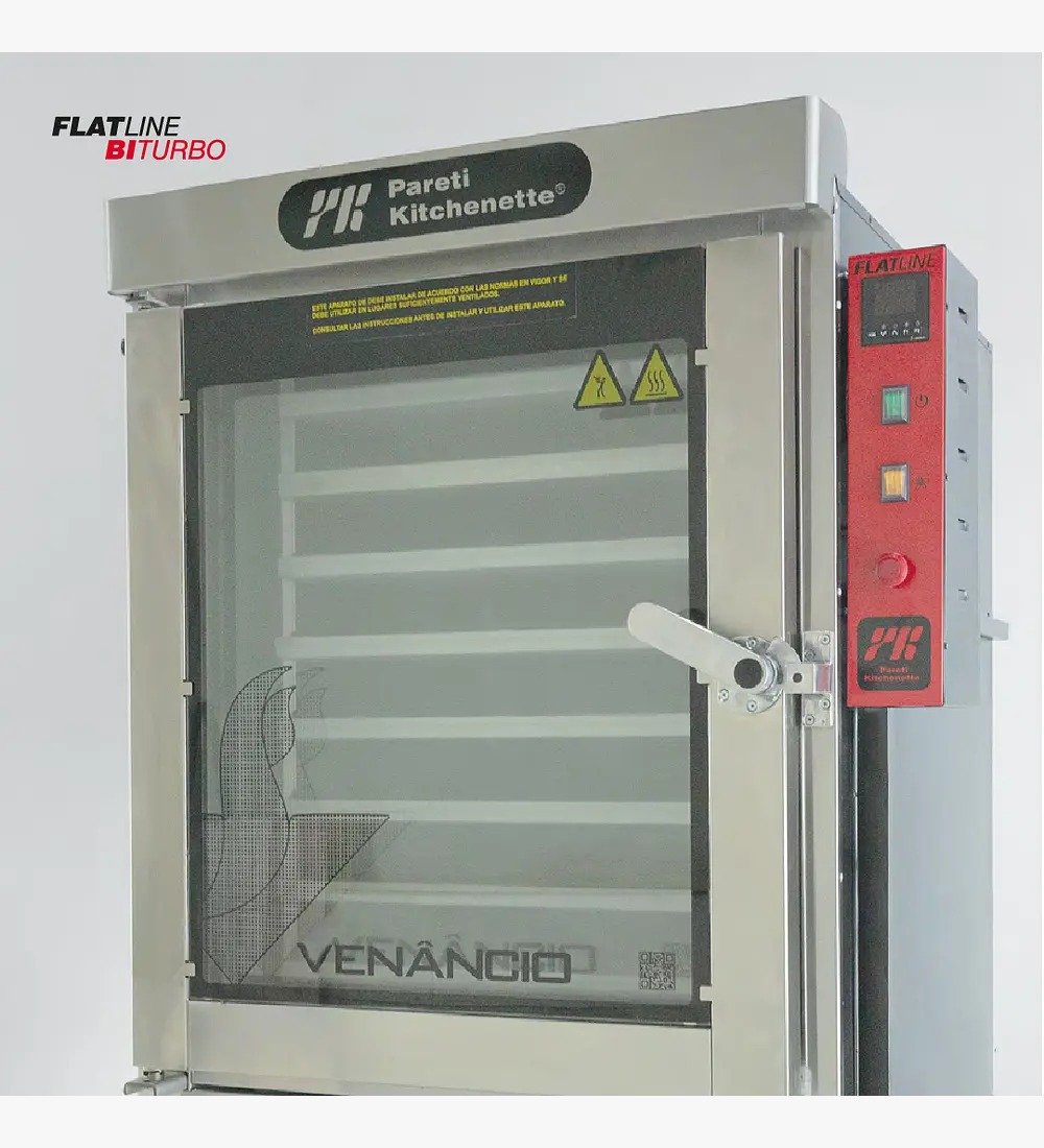 Los hornos turbo de Pareti-Kitchenette Son ideales para panadería, debido a que son máquinas de rápido calentamiento, alta productividad y gran calidad de cocción. Nuestros hornos Turbo se encuentran fabricados con bandejeros en acero inoxidable lo que facilita su higienización. Los hornos turbo cuentan con hélice en el interior de la cámara lo que hace un ambiente propicio para la cocción de masas, ya que este reparte el calor uniformemente por toda la cámara generando una cocción pareja del producto. Esta hélice puede programarse para girar de izquierda a derecha.
